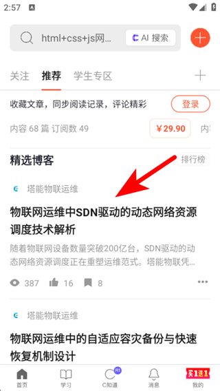 1、打開CSDN APP,我們需要點擊進入要閱讀的文章詳情頁。