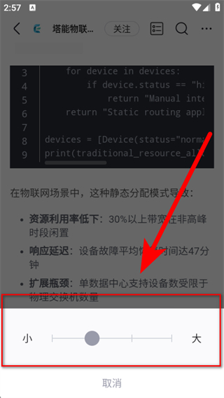 4、我們需要拖動滑塊進行左右移動,這樣就能調(diào)整文章字體大小。