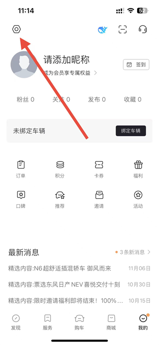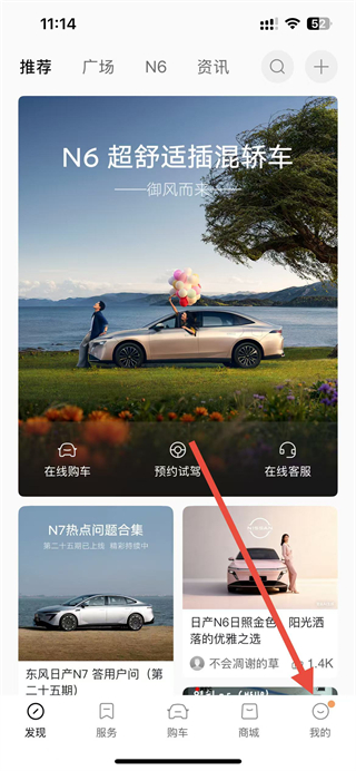 1、打開東風(fēng)日產(chǎn)app,點擊右下角我的選項,進(jìn)入個人頁面。