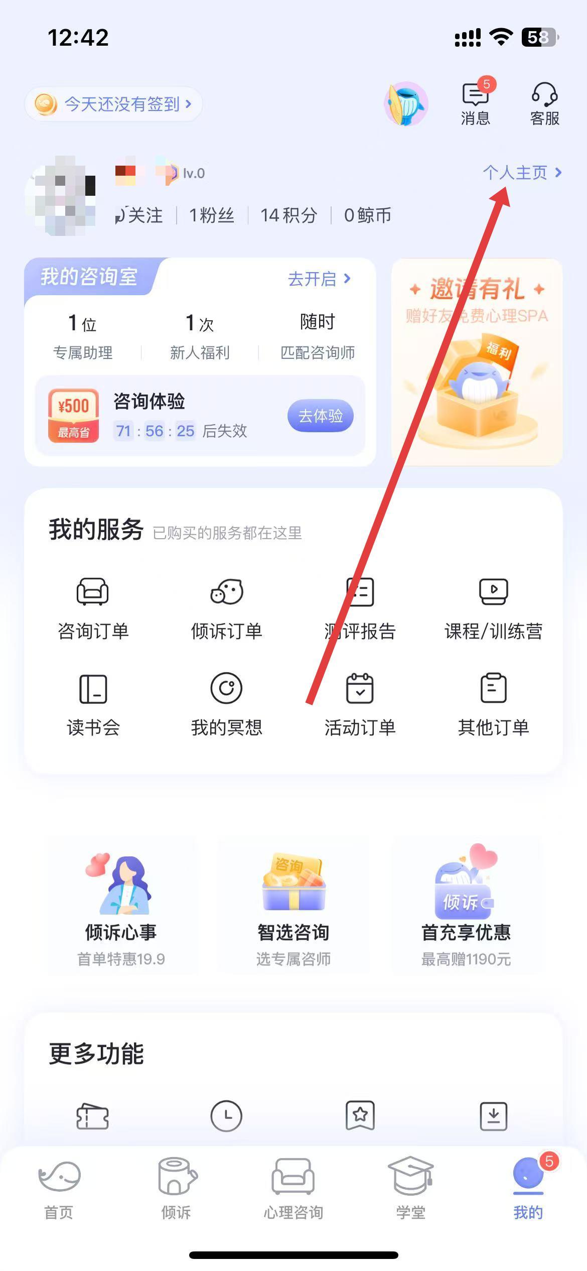 1、打開壹心理APP,點(diǎn)擊底部導(dǎo)航欄中的我的,進(jìn)入個(gè)人中心頁面。