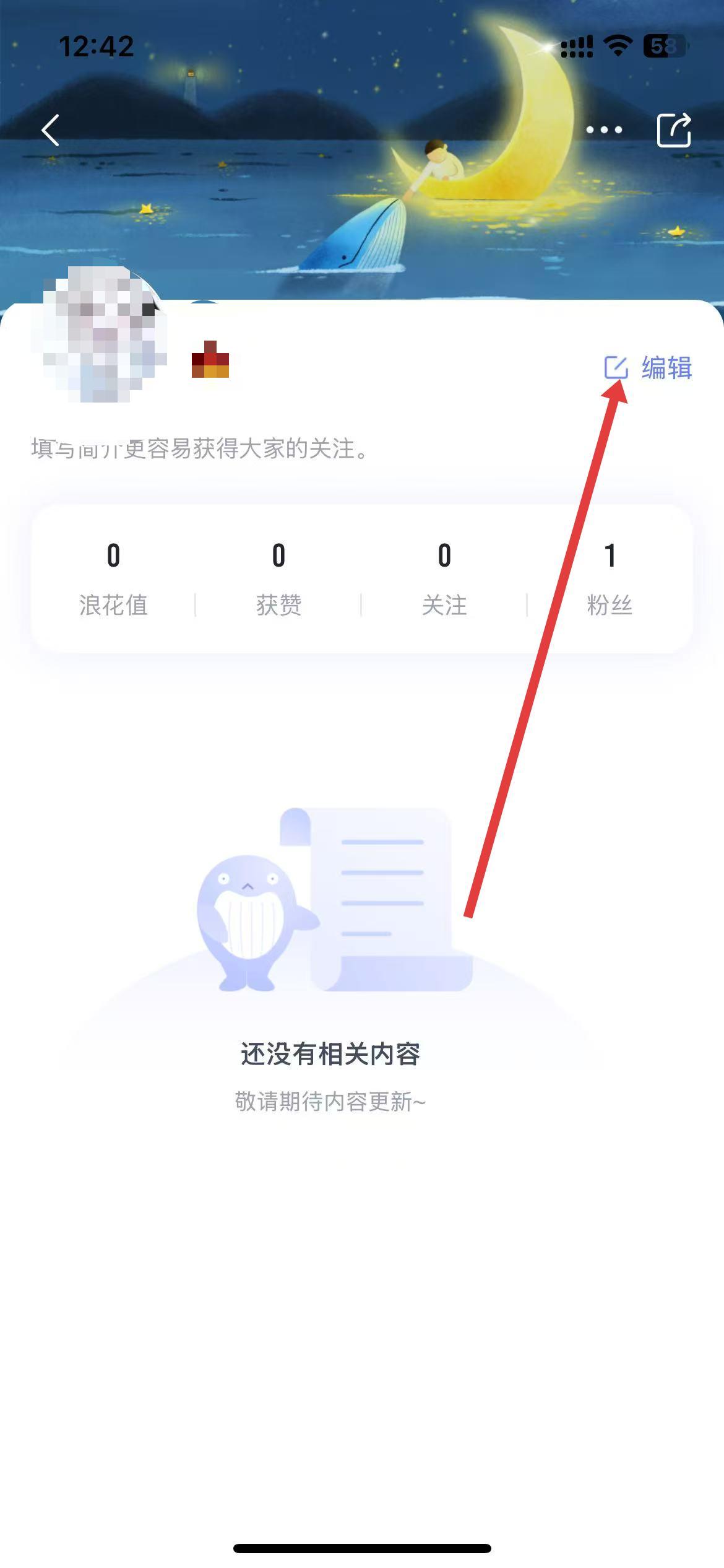3、進(jìn)入個(gè)人主頁后,點(diǎn)擊頁面右上角的編輯按鈕。