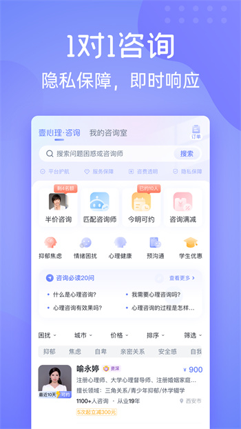 1.專業(yè)貼心:5000位心理咨詢師進(jìn)駐,為來訪者提供專業(yè)的心理輕問診,有需要的話還可以通過免費(fèi)語音預(yù)約服務(wù)與咨詢師一對(duì)一解答心事。