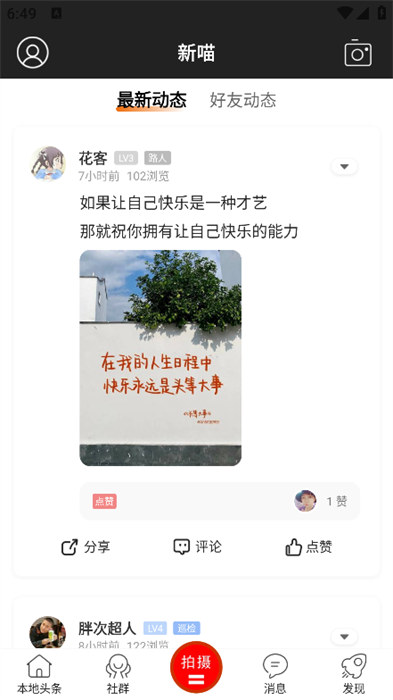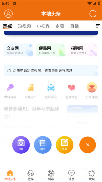 3、可以點(diǎn)擊進(jìn)行帖子的發(fā)布或者是拍攝上傳動(dòng)態(tài)信息;