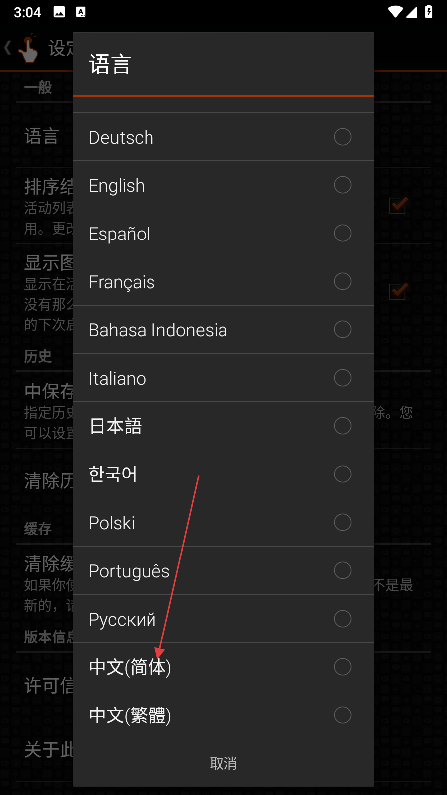 4、瀏覽語言列表找到中文(簡(jiǎn)體),點(diǎn)擊選中該語言即可。