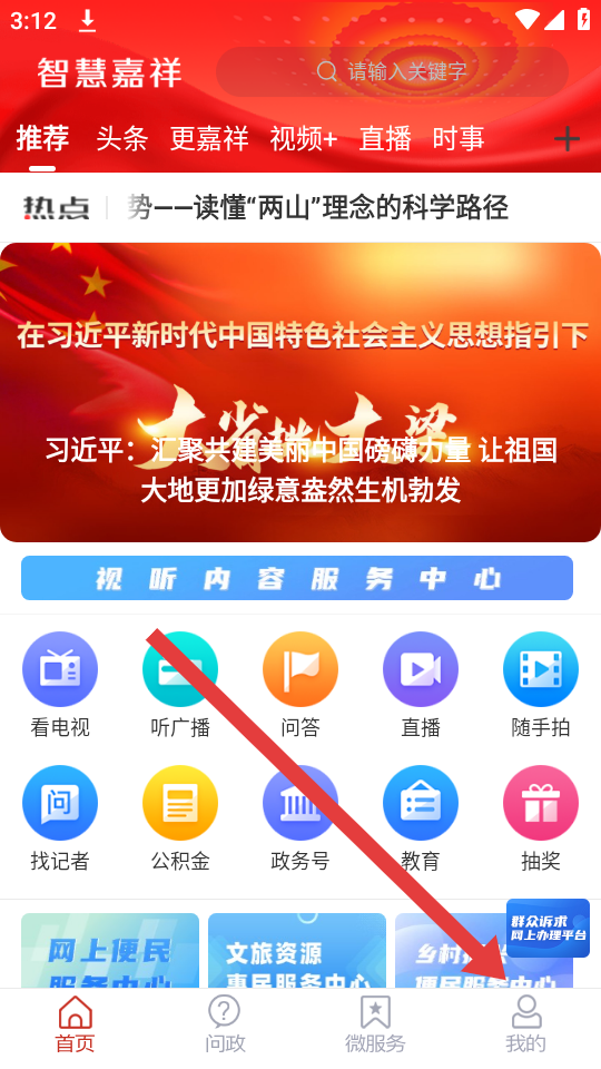 1、打開智慧嘉祥App,需要點擊首頁底部導航欄最右側(cè)的我的按鈕,然后進入個人中心的頁面。