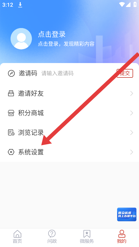 2、進入我的頁面中,我們需要找到并點擊最后一欄系統(tǒng)設置的選項,進入系統(tǒng)設置的界面。