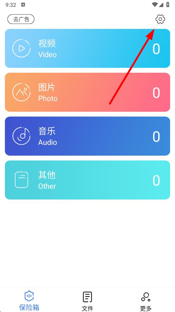 1、打開私密文件保險箱應(yīng)用,點(diǎn)擊界面右上角的設(shè)置圖標(biāo),喚出操作菜單。