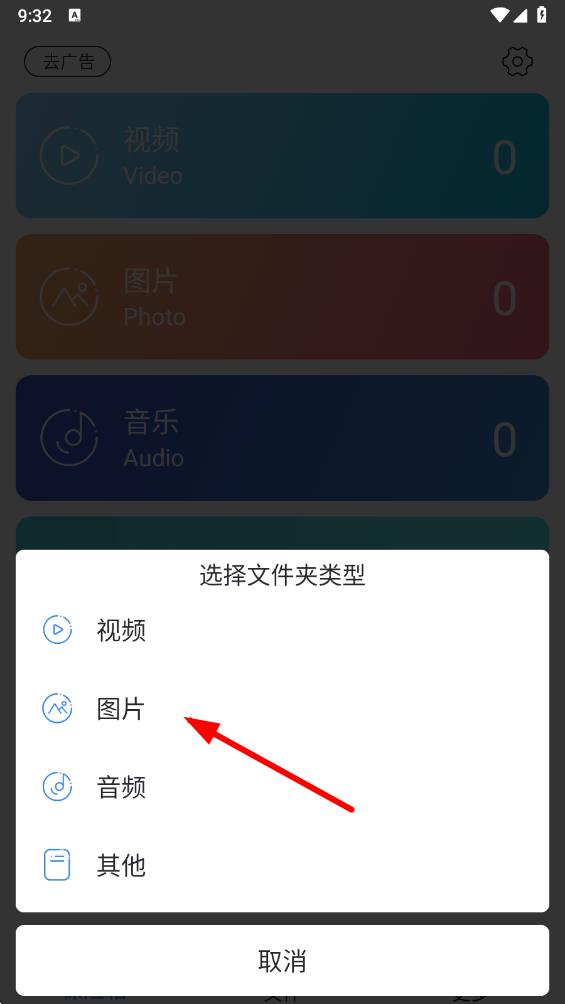 3、在選擇文件夾類型界面,根據(jù)需求選擇,如圖片等合適的文件夾類型。