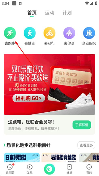 1、打開咕咚APP,在首頁點擊去跑步選項。