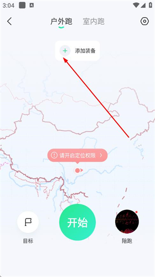 2、在戶外跑頁面點擊添加裝備,進入添加裝備頁面。