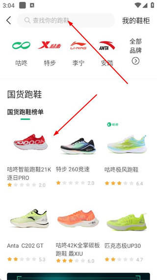 4、通過搜索或瀏覽選擇想要添加的跑鞋,點擊進入跑鞋詳情頁面。