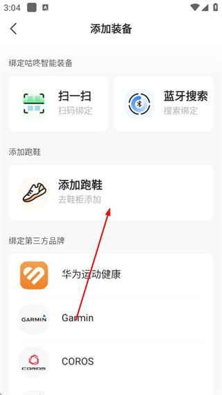 3、在添加裝備頁面點擊添加跑鞋,進入跑鞋選擇頁面。