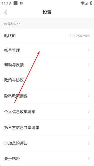 3、在設(shè)置頁面,點擊賬號管理選項。