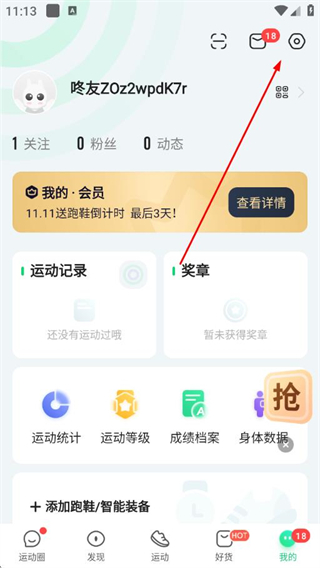 2、在我的頁面,點擊右上角設(shè)置圖標(biāo),進入設(shè)置頁面。
