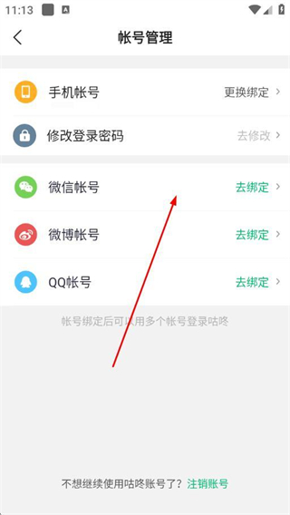 4、點擊微信帳號右側(cè)的去綁定,完成微信賬號綁定。