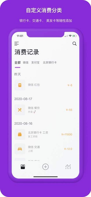 1.自定義消費(fèi)分類銀行卡、交通卡、美發(fā)卡等隨性添加
