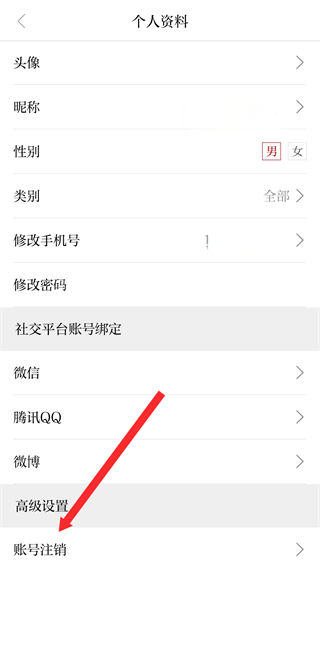 4、在個(gè)人資料的頁(yè)面,點(diǎn)擊賬號(hào)注銷(xiāo),按流程完成賬號(hào)注銷(xiāo)操作。