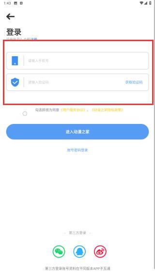 2、輸入手機號碼,設(shè)置登錄密碼或直接通過驗證碼注冊,完成短信驗證碼驗證后,即可注冊并自動登錄。