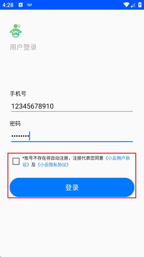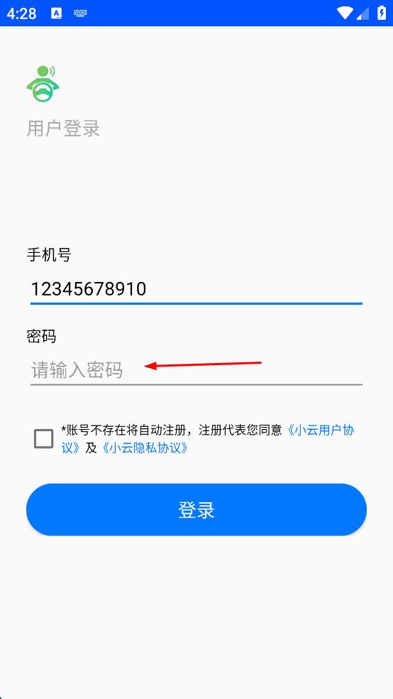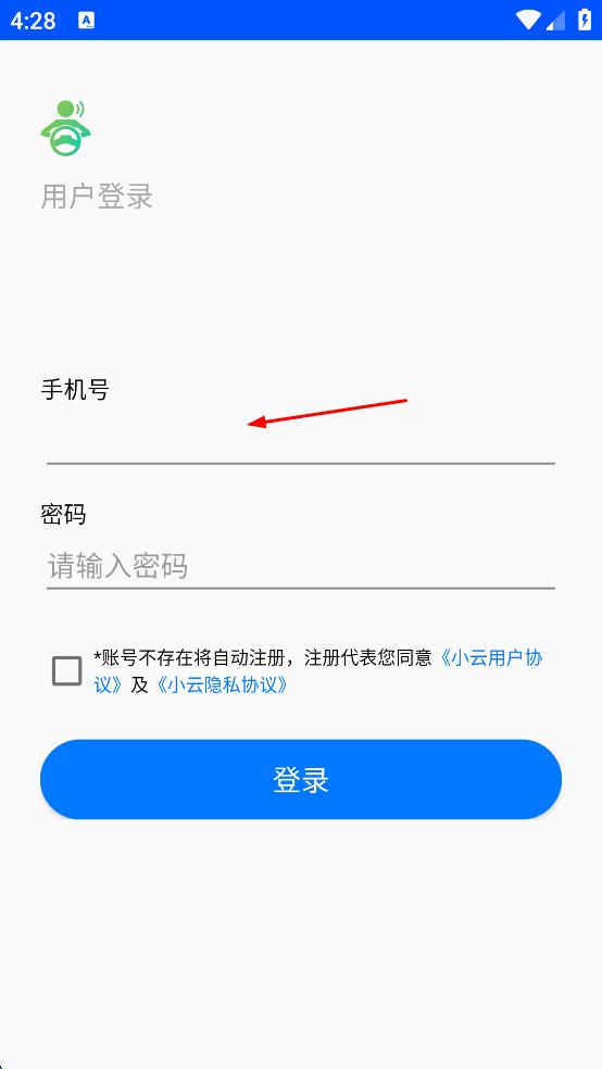4、勾選賬號不存在將自動注冊,注冊代表您同意小云用戶協(xié)議及小云隱私協(xié)議,點擊登錄。