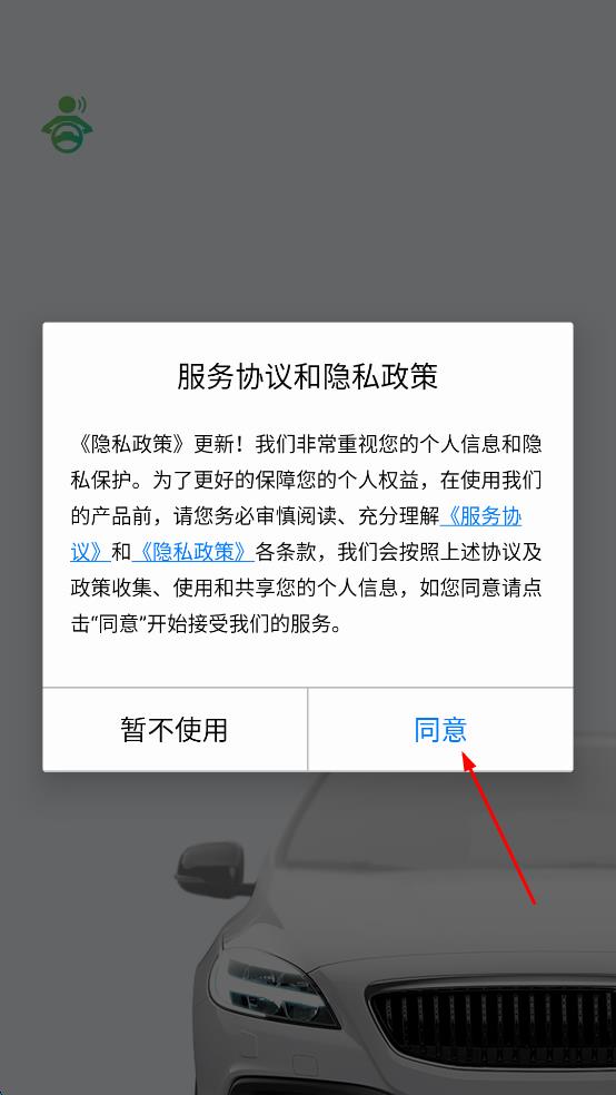 1、打開小云,出現(xiàn)服務(wù)協(xié)議和隱私政策提示框,點擊同意。