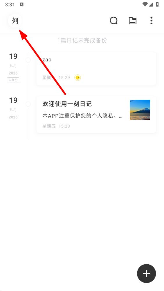 1、打開一刻日記app,點擊界面左上角的刻字圖標,進入相關界面。
