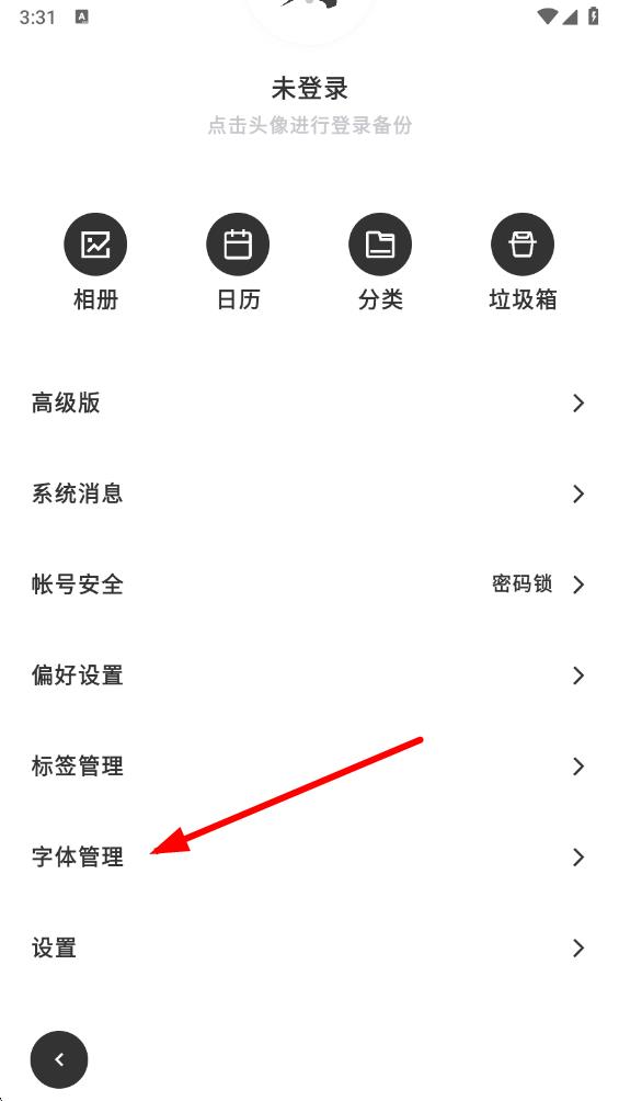 2、在進入的界面中,找到并點擊字體管理選項,進入字體選擇頁面。