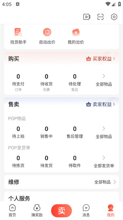 4、在我的里面可以看到自己購買的訂單信息和自己正在售賣的訂單等;