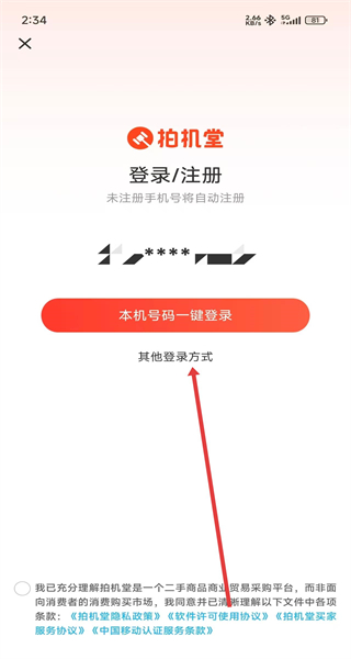 2、在進(jìn)入到登錄頁面中,可以點(diǎn)擊其他登錄方式按鈕,切換登錄方式。