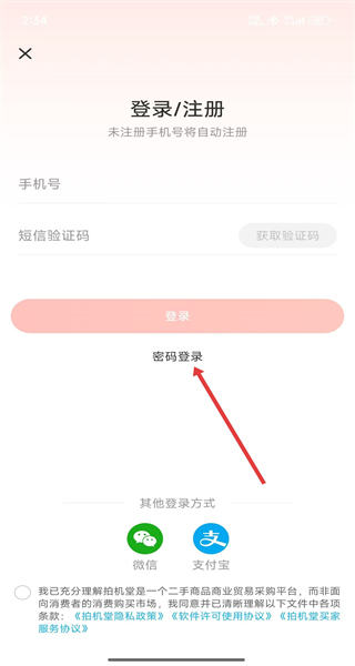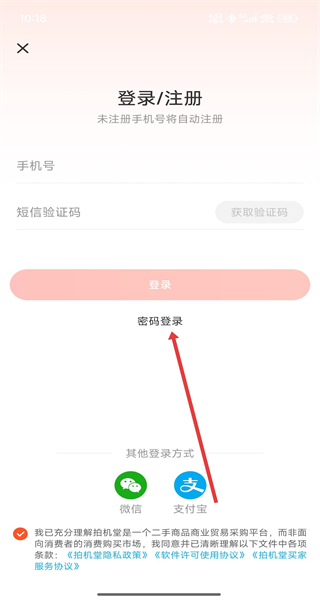 2、在登錄/注冊頁面點(diǎn)擊“密碼登錄”,進(jìn)入密碼登錄頁面。