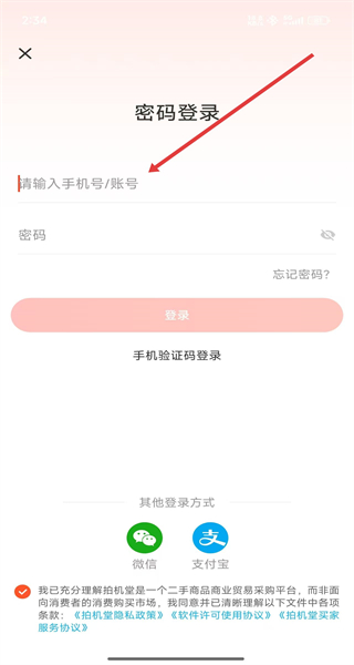 4、在進(jìn)入到密碼登錄頁面中,可以點(diǎn)擊輸入框依次填寫賬號和密碼后,即可完成登錄操作。