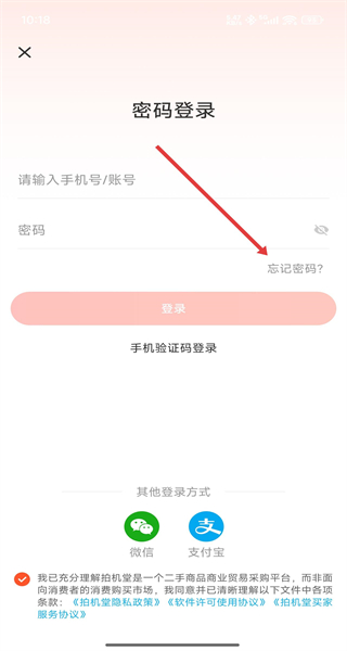 3、在切換到手機(jī)驗(yàn)證碼登錄頁面中,還可以點(diǎn)擊密碼登錄按鈕,切換使用密碼登錄。