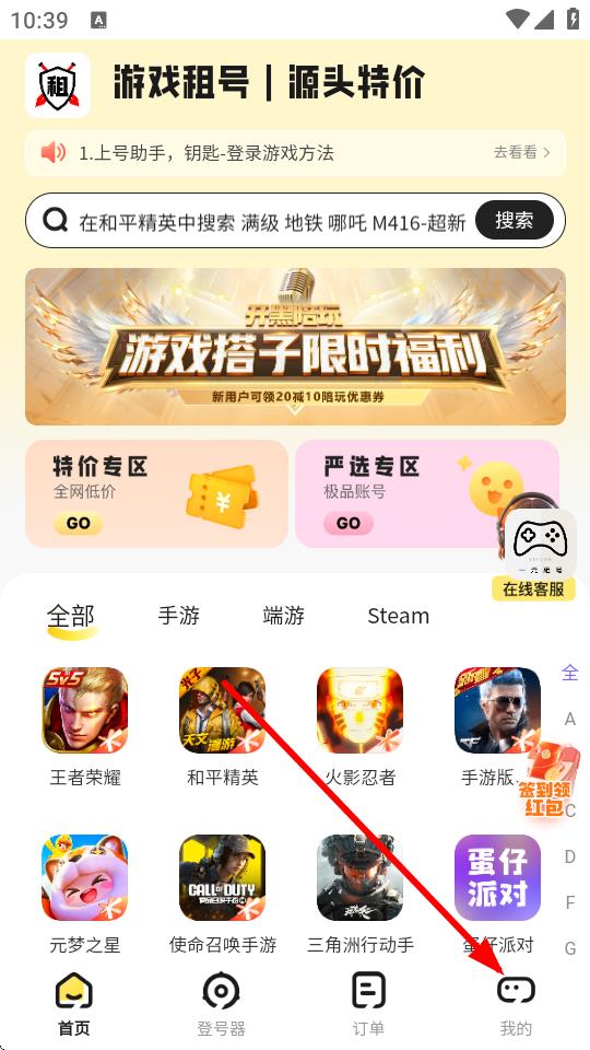 1、打開一元租號app,點擊底部導(dǎo)航欄中的我的。