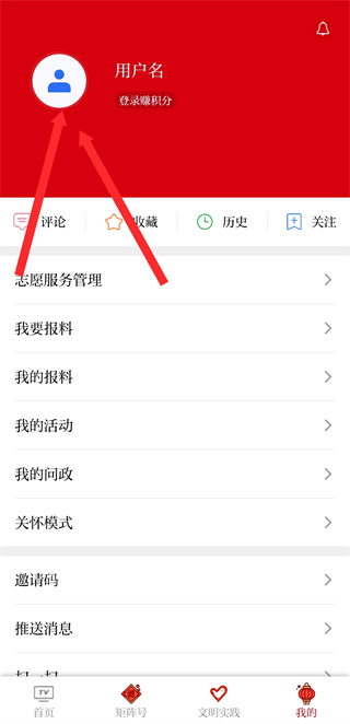 2、在個人的頁面,需要點擊我們頭像區(qū)域,進(jìn)入登錄選擇界面。