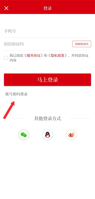 4、在進(jìn)入手機驗證碼登錄頁面,點擊賬號密碼登錄,完成登錄操作。
