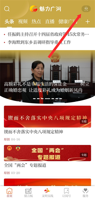 1、打開(kāi)首頁(yè)點(diǎn)擊首頁(yè)右上角的個(gè)人中心圖標(biāo),進(jìn)入個(gè)人功能操作界面。