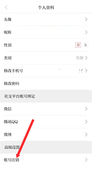 4、在個(gè)人資料頁(yè)面,找到賬號(hào)注銷(xiāo)功能,依據(jù)后續(xù)提示完成賬號(hào)注銷(xiāo)。