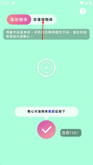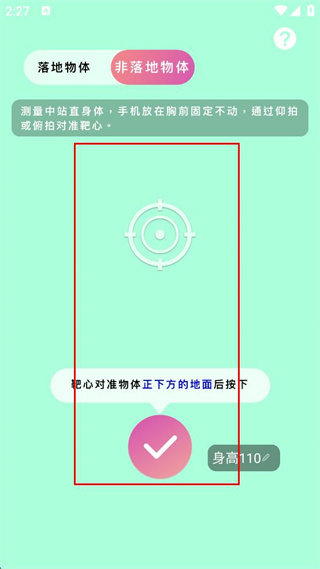 4、將靶心對準物體正下方的地面后按下確認按鈕完成測量。