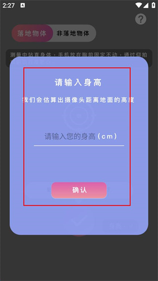 2、在身高輸入界面輸入身高后點擊“確認”。