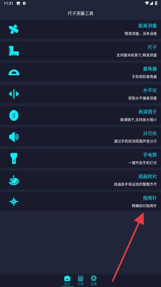 2、進(jìn)入到首頁內(nèi),點擊指南針的功能按鈕。