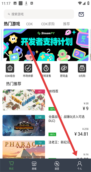steampy軟件是一款為steam用戶服務(wù)的交易平臺(tái),這里可以以超低的價(jià)格購買steam上的游戲、cdk、充值卡等,還能出售自己的賬戶余額、cdkd,每個(gè)用戶都有自己的信用度可查詢,安全可靠,有興趣的朋友快來下載體驗(yàn)吧。