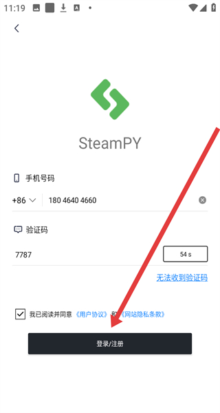 4、在輸入收到的驗(yàn)證碼后,點(diǎn)擊“登錄/注冊”,完成賬號(hào)登錄操作。