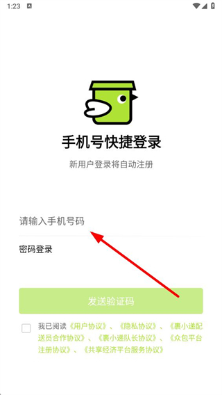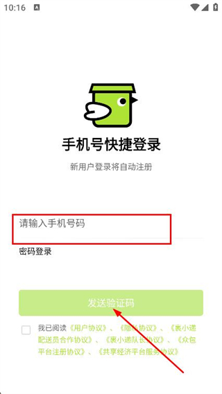 1、在裹小遞app登錄頁面輸入手機(jī)號碼。