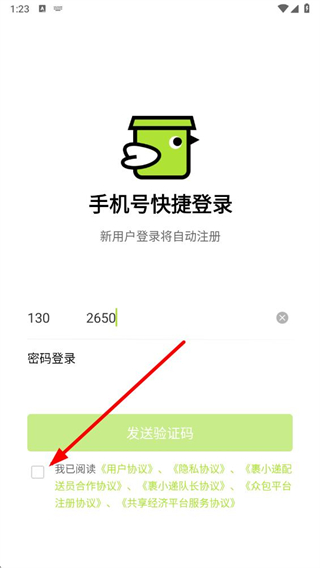 2、輸入手機(jī)號后,勾選同意相關(guān)協(xié)議。