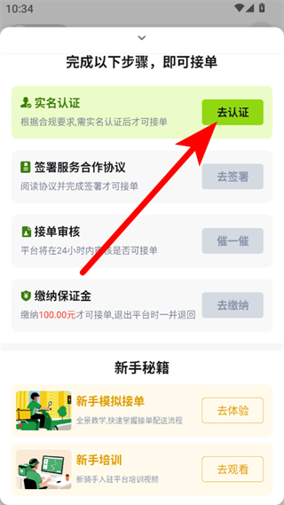 2、在加入流程頁面,點擊實名認(rèn)證后的去認(rèn)證選項,進(jìn)入實名認(rèn)證界面。
