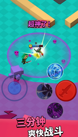 游戲玩法簡單有趣,豐富的游戲模式可以挑戰(zhàn),在這里玩家可以參加持續(xù)四分鐘的快速動(dòng)態(tài)戰(zhàn)斗