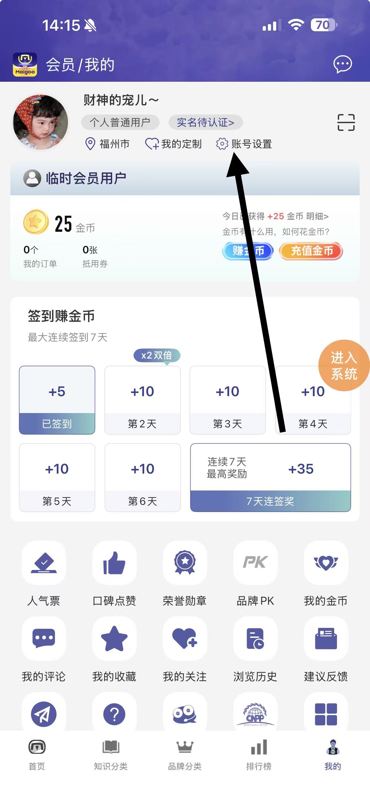 2、在個(gè)人頁(yè)面中,點(diǎn)擊賬號(hào)設(shè)置選項(xiàng),進(jìn)入賬號(hào)設(shè)置界面。