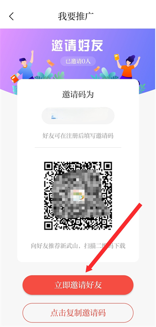3、在推廣的頁面,需要點(diǎn)擊立即邀請(qǐng)好友,彈出保存分享選項(xiàng)。