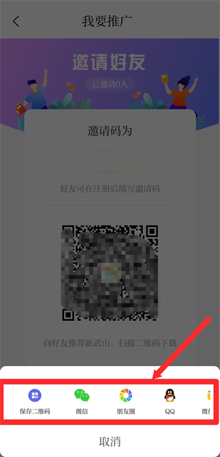 4、選擇對(duì)應(yīng)的分享方式,將邀請(qǐng)信息分享給好友,完成推廣操作。