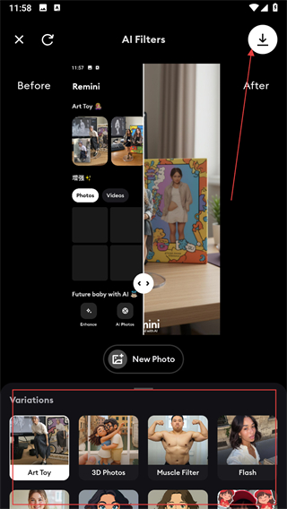 4、在效果界面點擊右上角下載圖標,保存增強后的圖片。