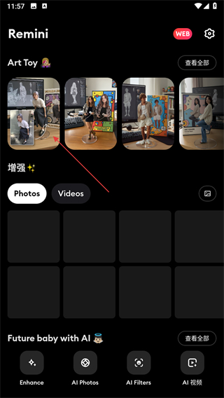 1、打開Remini,在首頁Art Toy板塊選一個模板進入。